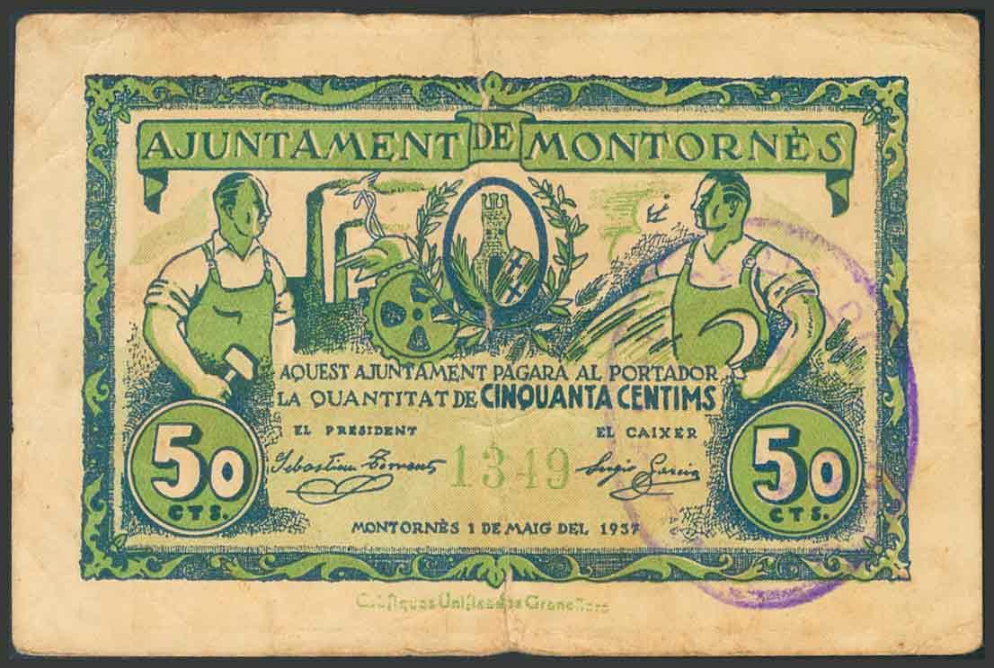 MONTORNES (LLEIDA). 50 Céntimos. (1938ca). (González: 8808). RC.