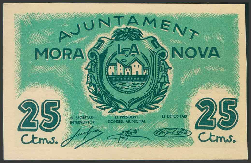 MORA LA NOVA (TARRAGONA). 25 Céntimos. (1938ca). (González: 8847). SC.