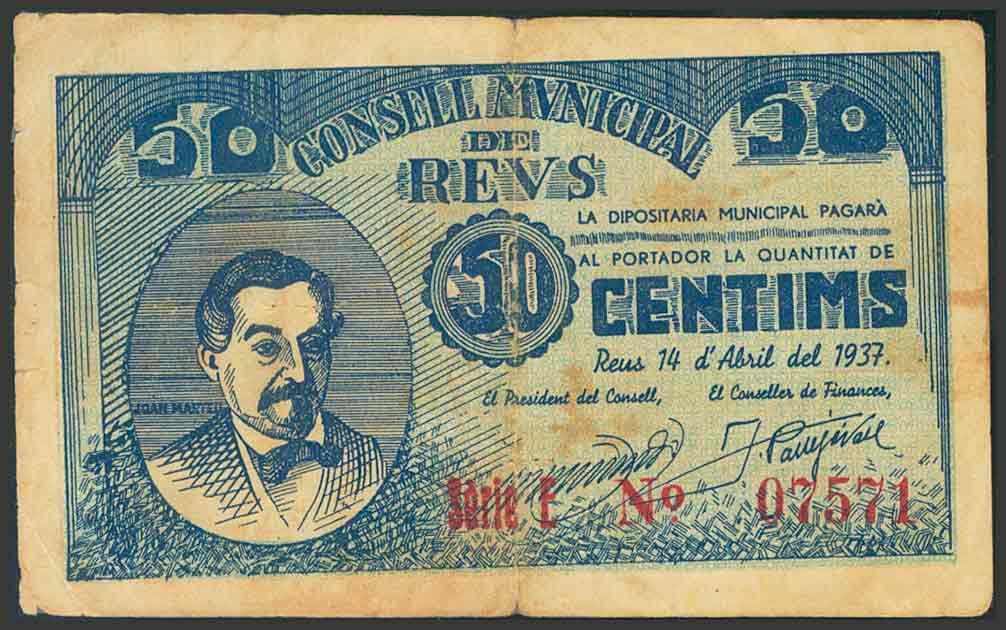 REUS (TARRAGONA). 50 Céntimos. 14 de Abril de 1937. BC-.