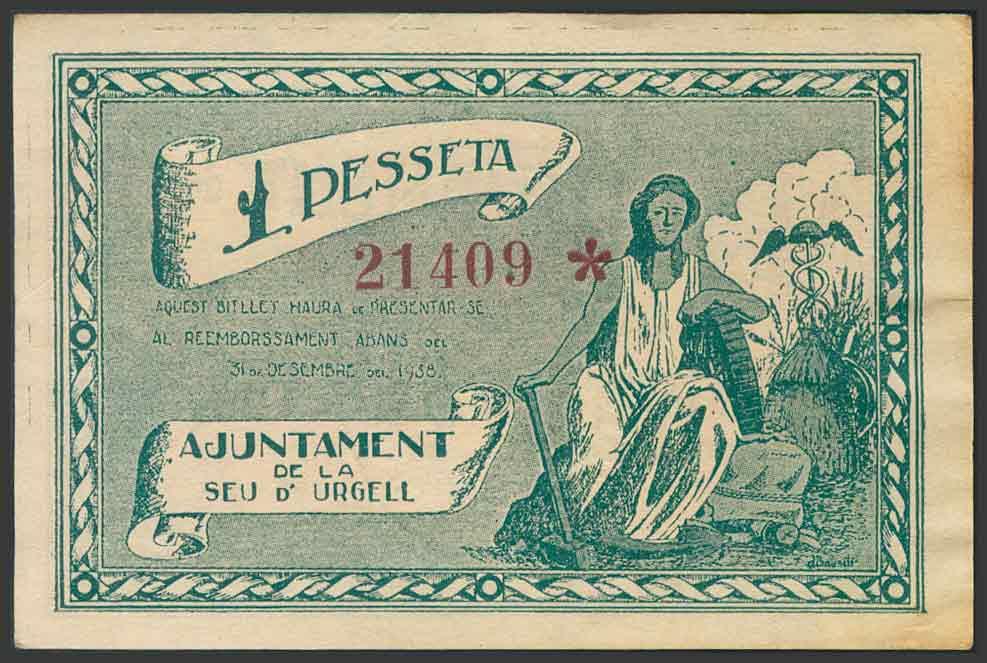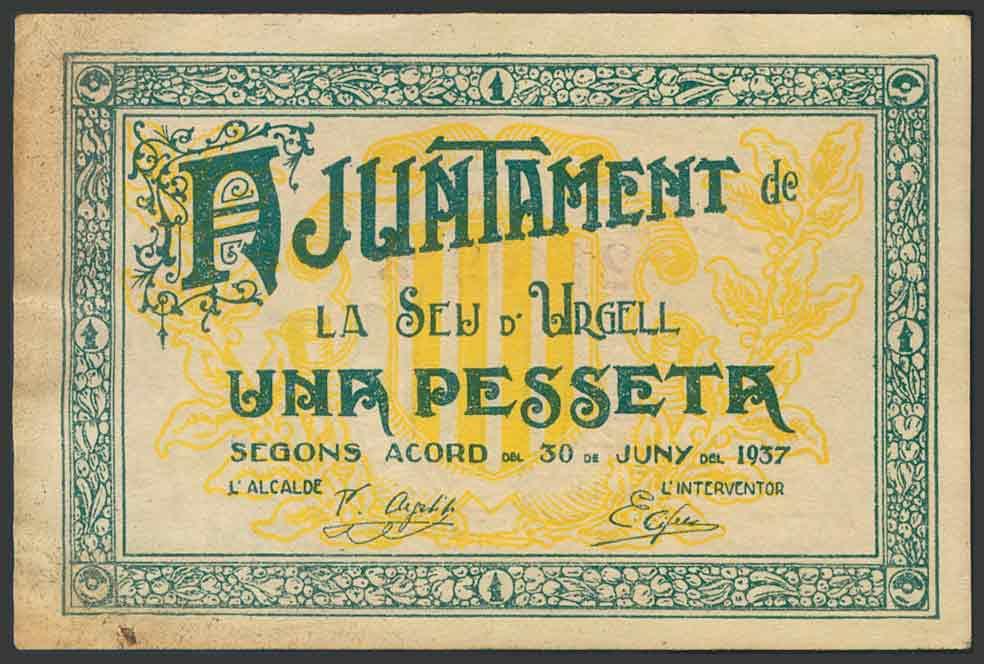 SEU DE URGELL (LLEIDA). 1 Peseta. 30 de Junio de 1937. (González: 9999). BC.