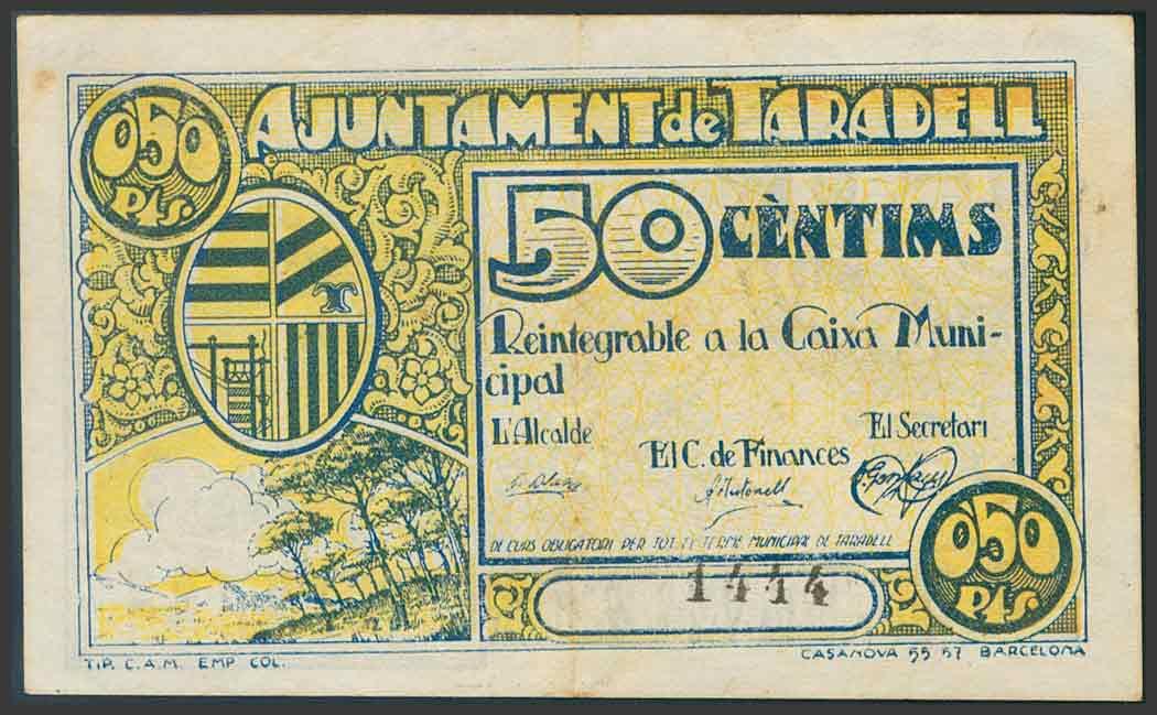 TARADELL (BARCELONA). 50 Céntimos. (1938ca). (González: 10083). MBC.