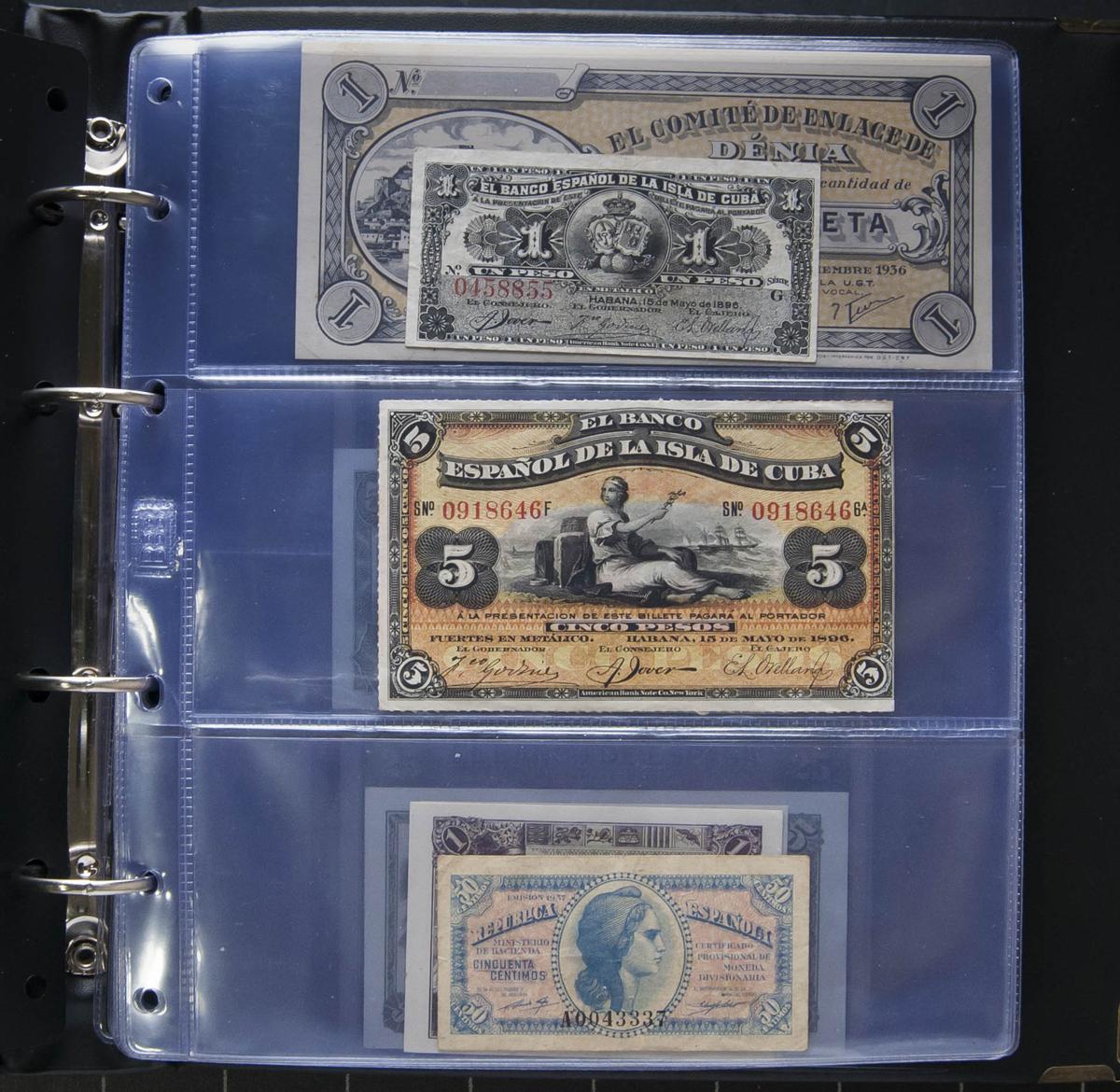 Precioso conjunto de billetes del Banco de España, también incluye algunos de de Guerra Civil y de Cuba. A EXAMINAR.