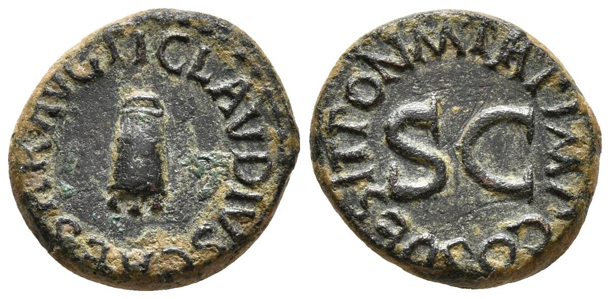 CLAUDIO. Cuadrante. 41-54 d.C. Roma. A/ Modio. TI CLAVDIVS CAESAR AVG. R/ S C, alrededor PON M TR P IMP COS DES IT. RIC 84. Ae. 3,68g. MBC+.