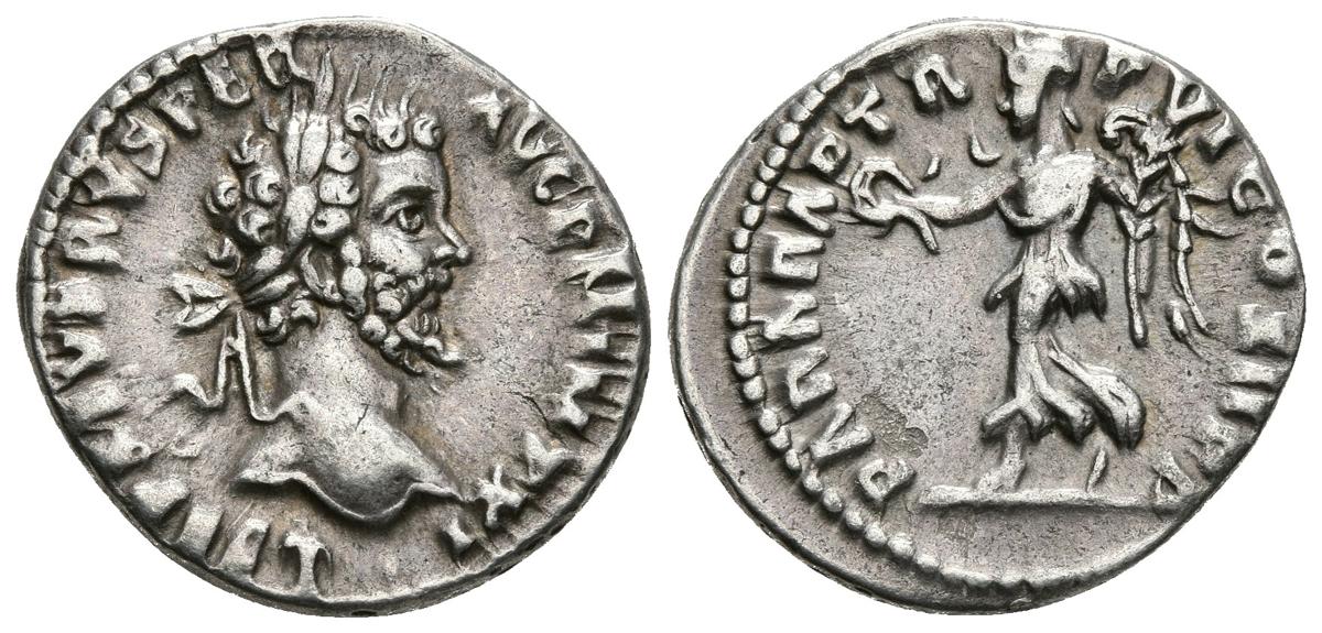SEPTIMIO SEVERO. Denario. 198 d.C. Laodicea. A/ Busto laureado a derecha. L SEPT SEVERVS PER AVG P M IMP XI. R/ Victoria avanzando a izquierda portando corona y palma. PAR AR AD TR P VI COS II P P. RIC 158; Cohen 361. Ar. 3,15g. EBC-/MBC+. Escasa.