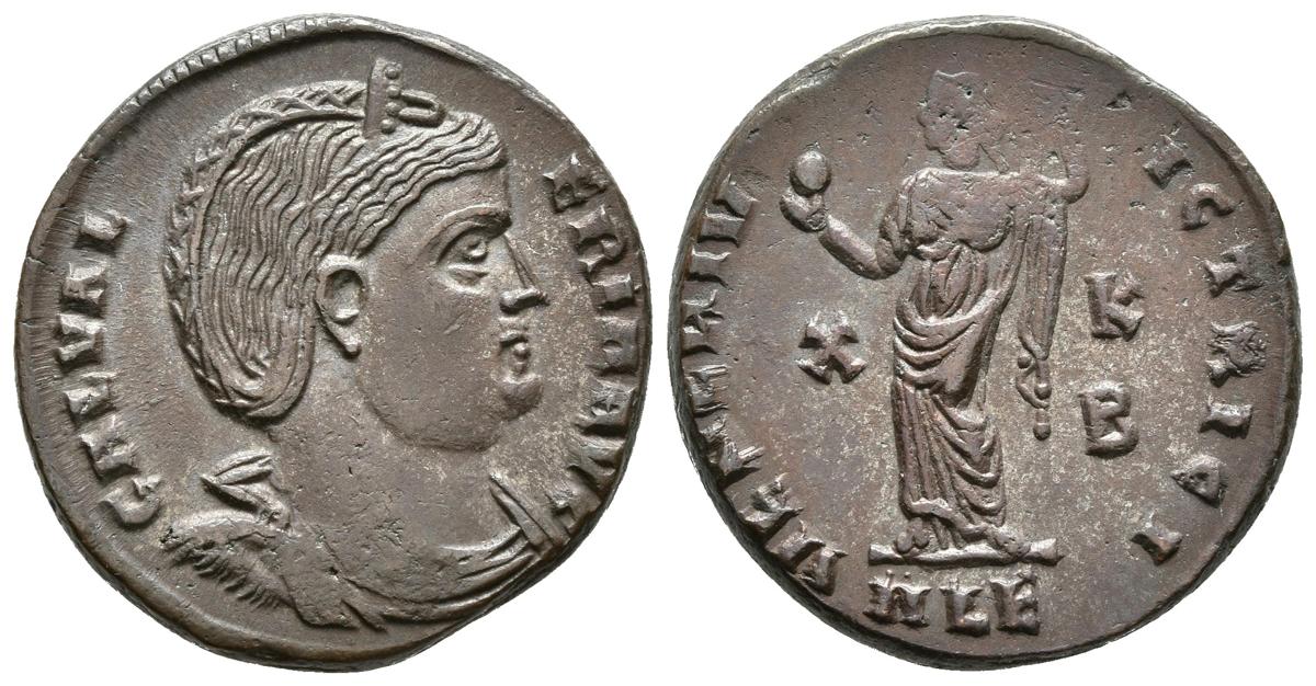 GALERIA VALERIA. Follis. 308 d.C. Alejandría, 2ª Oficina. A/ Busto con diadema y drapeado a derecha. GAL VALERIA AVG. R/ Venus estante a izquierda con manzana y sosteniendo su vestido, a ambos lados X-K B. VENERI VICTRICI, en exergo ALE. RIC VI 81var . Ae. 7,36g. MBC+. Ex Col. Dattari.