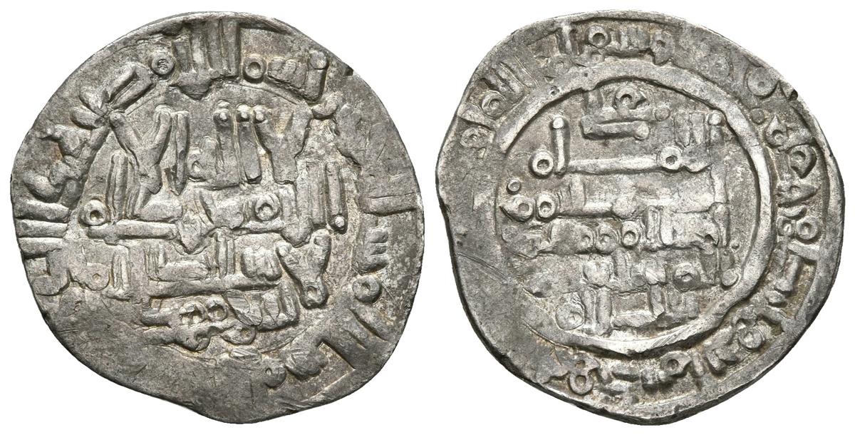 REINOS DE TAIFAS. Alí Ibn Hammud (Hammudies). Dirham. 405H. Madinat Sabta (Ceuta). Reconociendo a Sulayman Al-Munstain. V. No cita; Ceuta 8, Pl. I. Ar. 1,88g. MBC+. Muy rara.