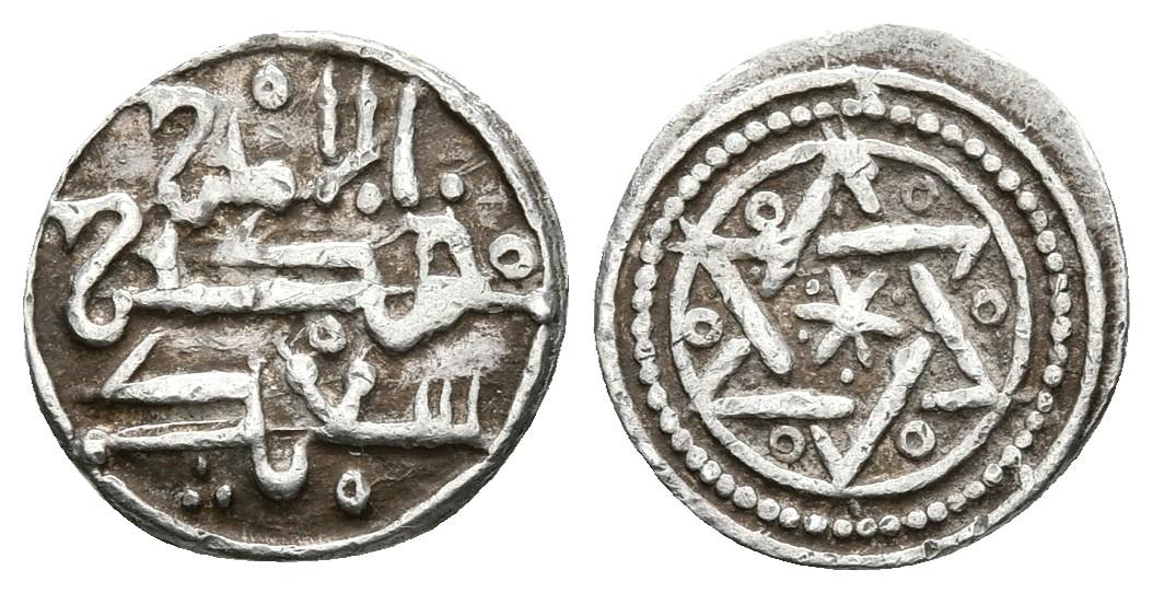 TAIFAS ALMORAVIDES. Muhammad ibn Sa’d. 1/2 Quirate. 542-567 H. Vives 1970; Album 407Dvar.; Kassis 117; FBM-Ra2. Ar. 0,47g. Buen ejemplar. EBC-. Muy rara.