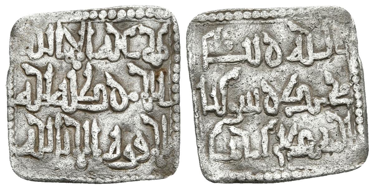 ALMOHADES. Dirham. Anónimo a nombre de Al-Mahdï. Escritura cúfica muy ornamentada. Hazard 1123 var; Hohertz-82. Ar. 1,42g. MBC.