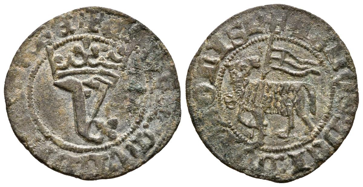 JUAN I. Blanca del Agnus Dei. (1379-1390). Sevilla. A/ + AGNVS : DEI : QVI TOLIS P. R/ + E CATA : MVNDI : MISERE. AB 555. Ve. 1,61g. MBC.