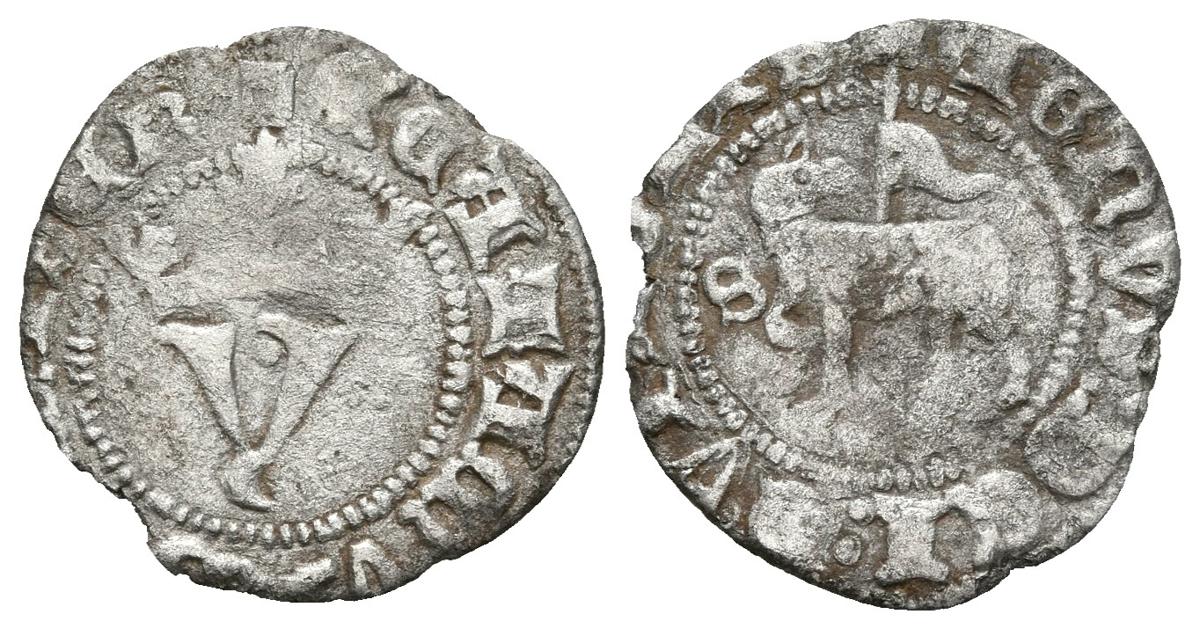 JUAN I. 1/2 Blanca del Agnus Dei. (1379-1390). Sevilla. AB 562. Ve. 0,47g. MBC-. Escasa.