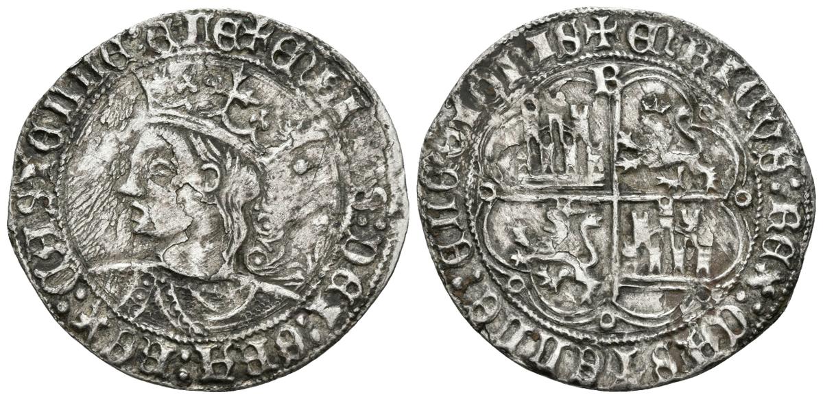 ENRIQUE IV. Real de busto. (1454-1474). Burgos. A/ Punto detrás del busto. Leyenda: + ENRICVS : DEI : GRA : REX : CASTELLE : ELE . R/ Leyenda: + ENRICVS : REX : CASTELLE : ELEG . AB 682.1. Ar. 3,01g. MBC.