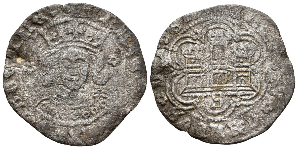 ENRIQUE IV. Cuartillo. (1454-1474). Sevilla. Con florón a cada lado del busto. AB 755. Ve. 2,77g. MBC-. Escasa.