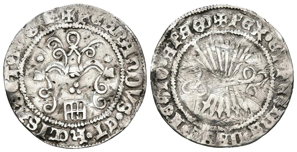 REYES CATOLICOS. 1/2 Real. (1474-1504). Segovia. A/ Leyenda: + FERNANDVS · ET · HELISABET · D · G · R. R/ Leyenda: + PEX · ET · REGINA · CAST · LEGIO · ARAGO. Cal-465; J. Luis López de la Fuente No cita. Ar. 1,54g. MBC-/BC+.