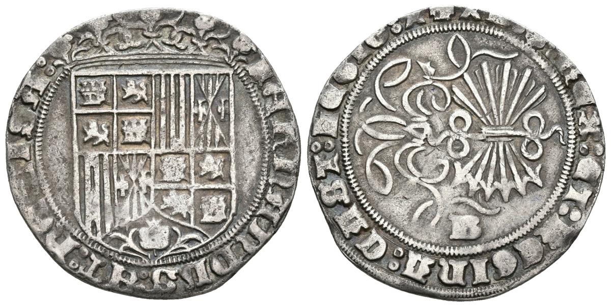 REYES CATOLICOS. 1 Real. (1474-1504). Burgos. A/ Leyenda: + FERNANDVS : ET : HELISA :. R/ Leyenda: + X BET : D : G : REX : ET · REGINA : CAST : LEGIO : X. Cal-285var; J. Luis López de la Fuente F1.6.1.8.var. Ar. 3,24g. MBC-.