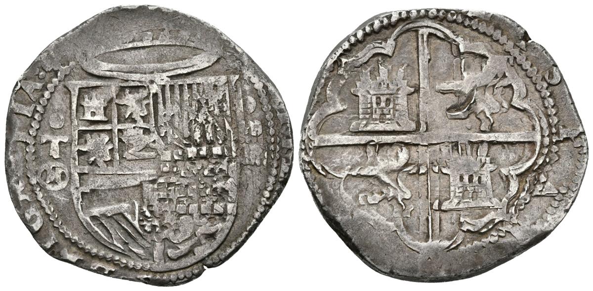FELIPE II. 4 Reales. S/D. Toledo, T superada por roel y M dentro de círculo. Cal-414. Ar. 13,67g. MBC-.