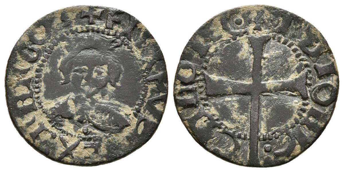 FELIPE II. 1 Dobler. S/D. Mallorca. Cal-832; Cru.C.G. 4257a. Ae. 1,24g. MBC.