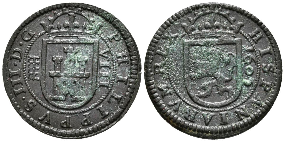 FELIPE III. 8 Maravedís. 1605. Segovia. Cal-761; J.S. D-219. Ae. 5,87g. EBC-/MBC+.