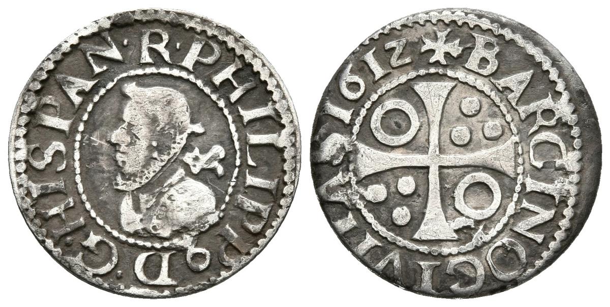 FELIPE III. 1/2 Croat. 1612. Barcelona. Cal-5345. Ar. 1,54g. MBC.