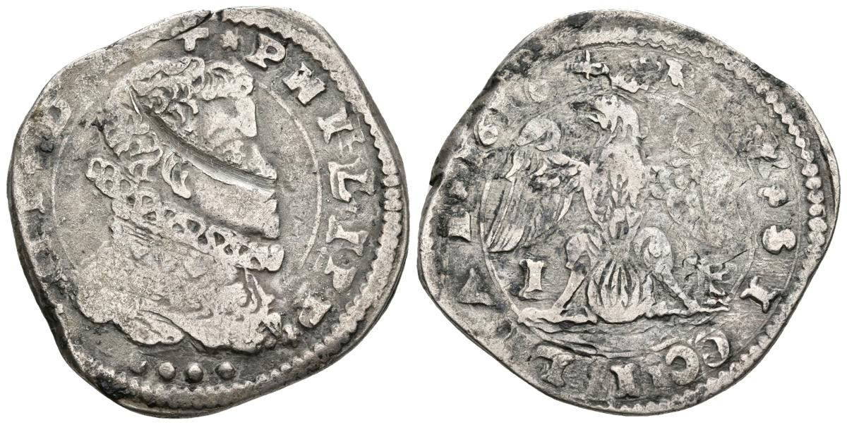 FELIPE III. 4 Taris. 1616. Messina I-P. Vti-138; Mir-345/12. Ar. 9,88g. Golpe en anverso. MBC/MBC-.