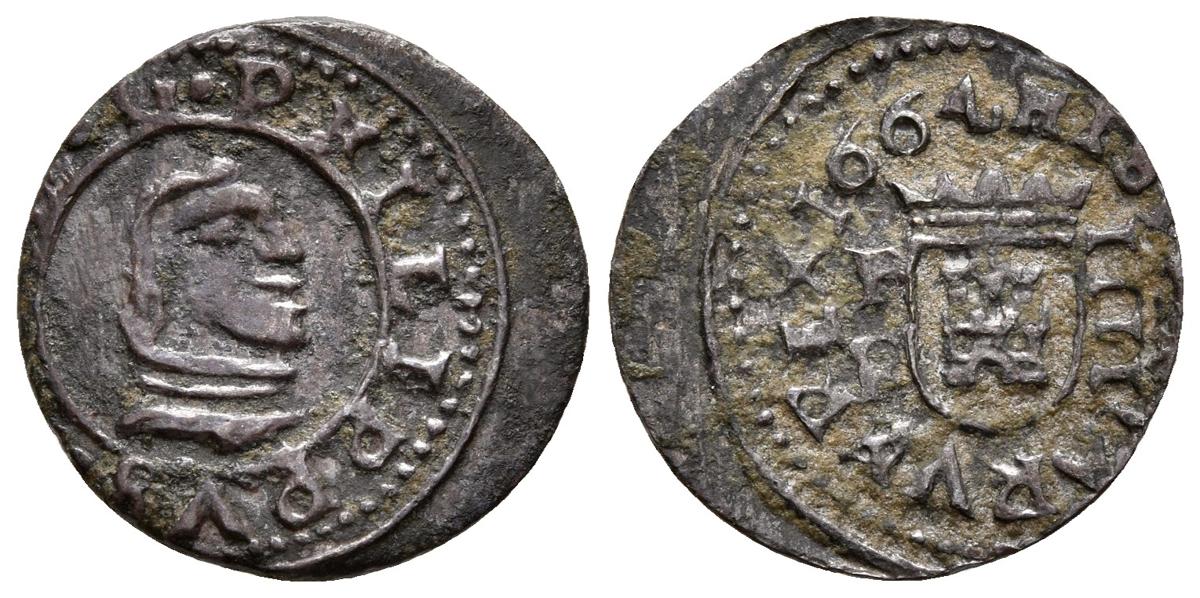 FELIPE IV. 4 Maravedís. 1664. Burgos R. Cal-1272; J.S. M-42. Ae. 1,04g. Acuñación descentrada. MBC.