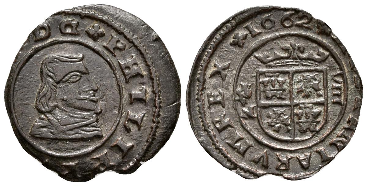 FELIPE IV. 8 Maravedís. 1662. Granada N. Cal-1363; J.S. M-245. Ae. 1,93g. Acuñación desplaza en anverso. EBC.