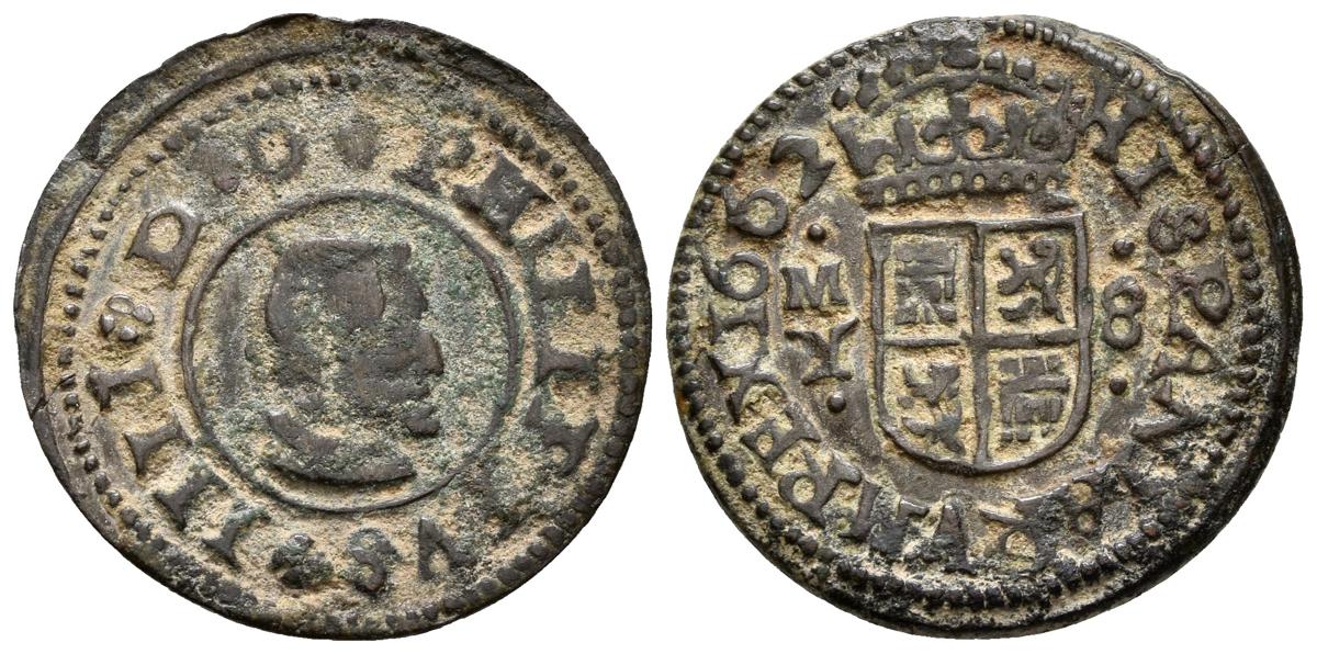 FELIPE IV. 8 Maravedís. 1662. Madrid Y. Cal-1427; J.S. M-443. Ae. 2,44g. MBC-.