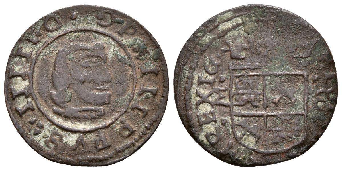 FELIPE IV. 8 Maravedís. 166X. Madrid M. Falsa de época. Cal-; J.S. Pág 429var Ae. 1,39g. MBC+/MBC.