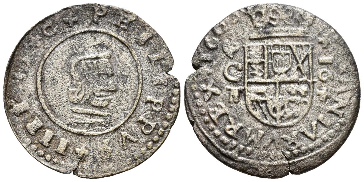 FELIPE IV. 16 Maravedís. 1664. Córdoba T. Falsa de época, sin M bajo el escudo. J.S. pág. 384. Ae. 4,32g. MBC-.