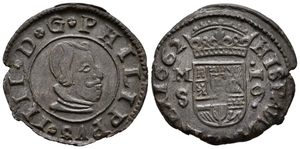 FELIPE IV. 16 Maravedís. 1662. Madrid S. N invertida en reverso. Cal-1396; J.S. M-374. Ae. 3,98g. EBC-/MBC+.