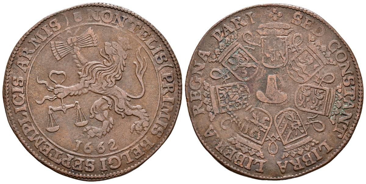 FELIPE IV. Jetón. 1662. Utrecht. Alizanza de Francia, Inglaterra y las Provincias Unidas. Dugn 4185; Pax 246. Ae. 7,50g. 35 mm. MBC.