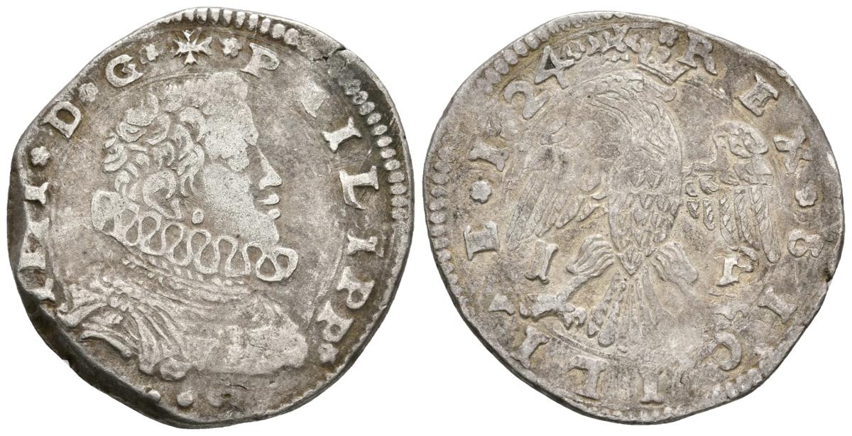 FELIPE IV. 4 Taris. 1624. Messina I-P. Vti-171; Mir-355/4. Ar. 10,31g. MBC/MBC+.