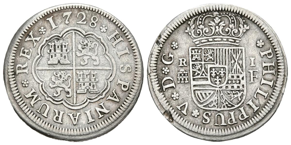 FELIPE V. 1 Real. 1728. Segovia F. Cal-1694. Ar. 2,50g. MBC/MBC-.