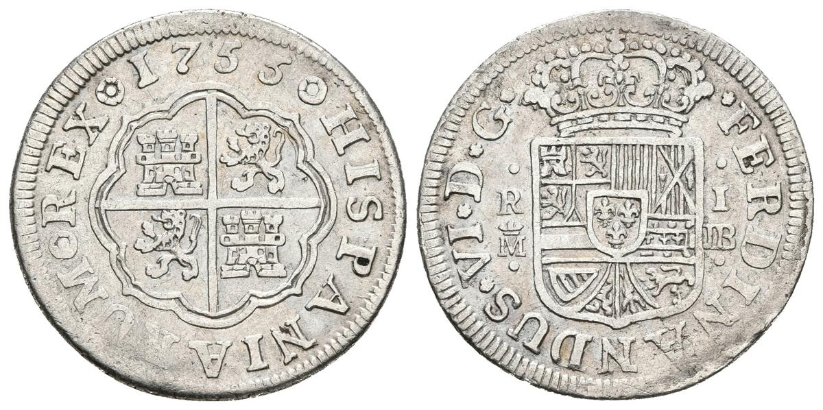 FERNANDO VI. 1 Real. 1755. Madrid JB. Cal-655. Ar. 2,79g. MBC/MBC-.