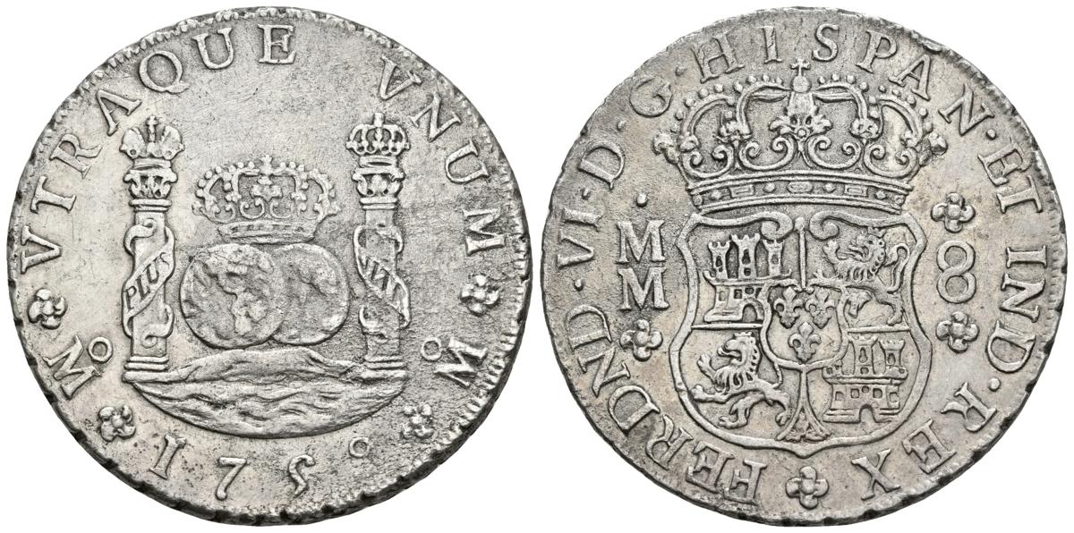 FERNANDO VI. 8 Reales. 1759. México MM. Columnario. Cal-344. Ar. 26,39g. Oxidaciones limpiadas. MBC+.