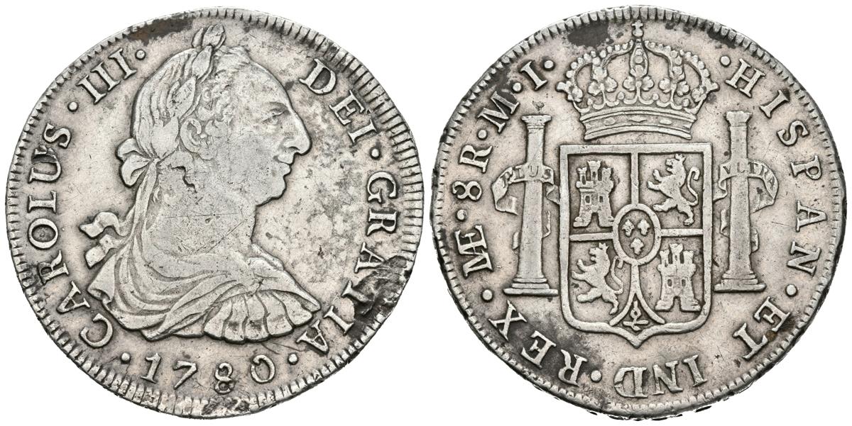 CARLOS III. 8 Reales. 1780. Lima MI. Cal-861. Ar. 26,69g. MBC. Escasa.
