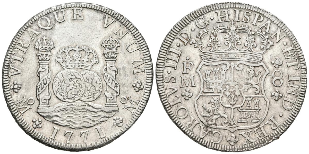 CARLOS III. 8 Reales. 1771. México FM. Columnario. Cal-914. Ar. 26,96g. MBC+.