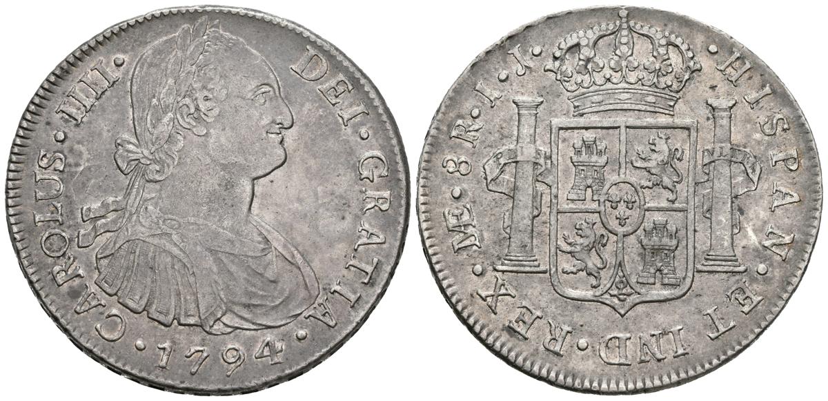 CARLOS IV. 8 Reales. 1794. Lima IJ. Cal-648. Ar. 27,07g. Buen ejemplar. MBC+.