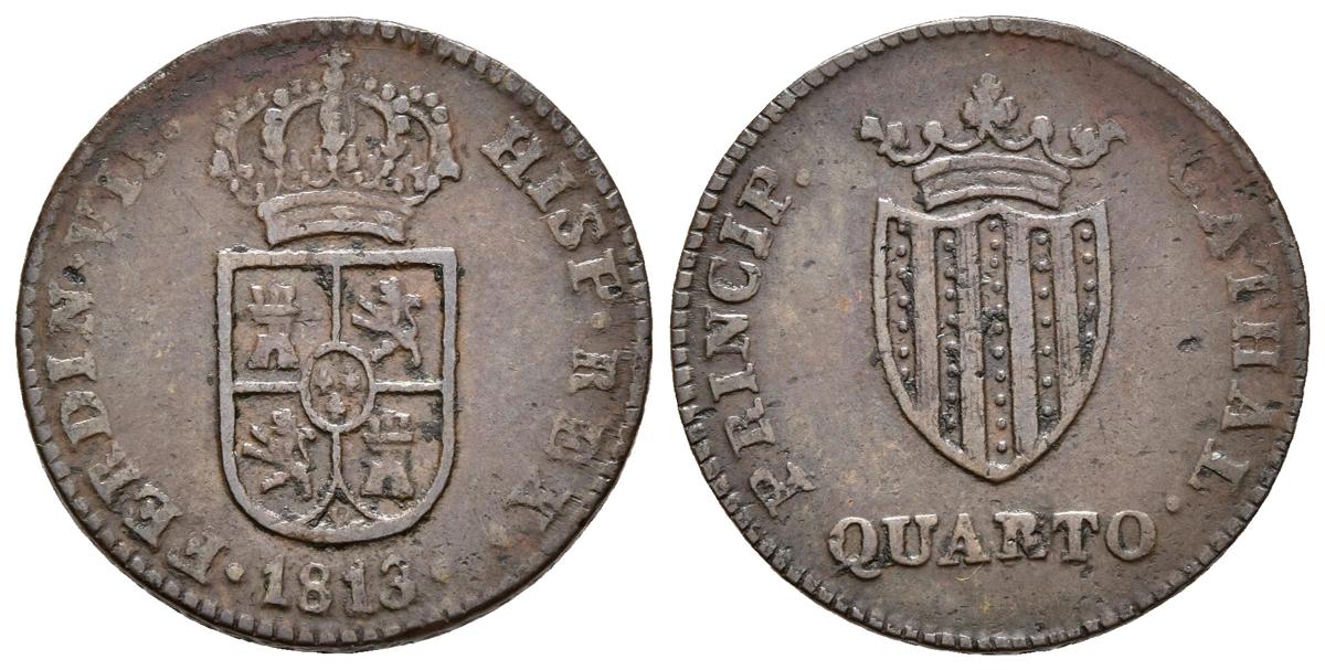 FERNANDO VII. 1 Cuarto. 1813. Cataluña. Valor sin orla. Cal-1532 (Error de fecha). Ae. 2,95g. MBC-/MBC. Escasa.