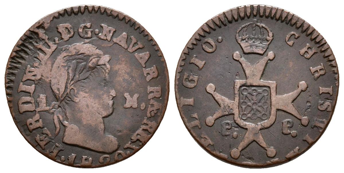 FERNANDO VII. 1 Maravedí. 1820. Pamplona. Busto grande. Cal-1653. Ae. 1,99g. MBC-. Escasa.