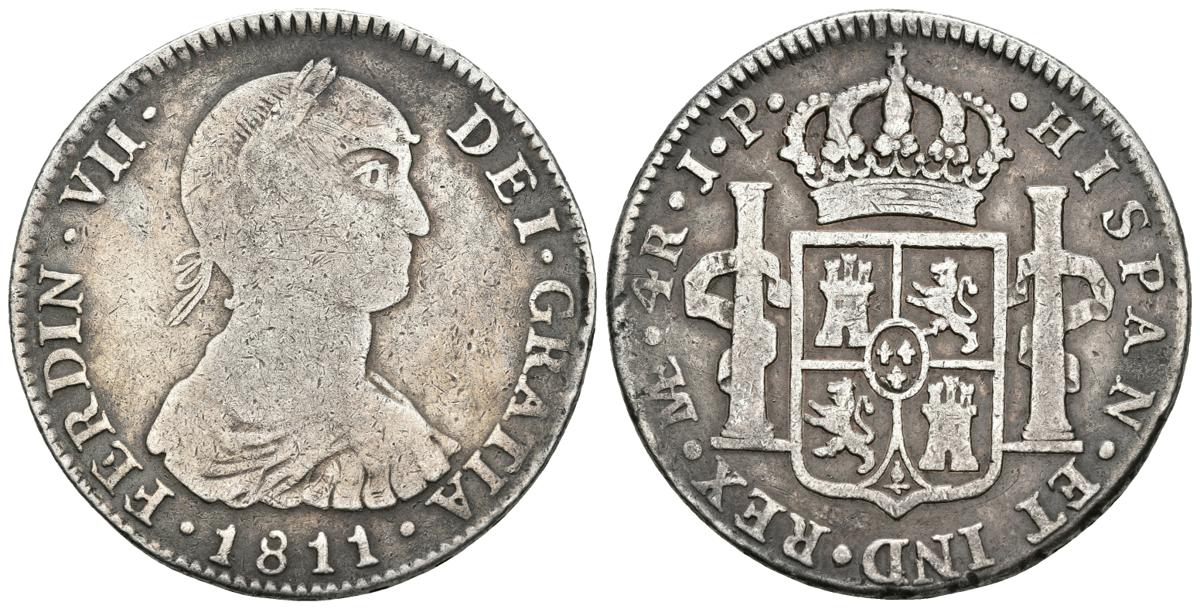 FERNANDO VII. 4 Reales. 1811. Lima JP. Cal-739. Ar. 13,14g. BC+/MBC-. Escasa.