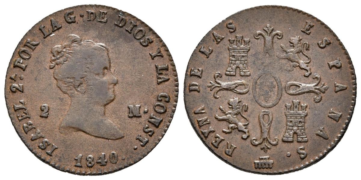ISABEL II. 2 Maravedís. 1840. Segovia, variante de Ñ sin tilde. Cal-551var. Ae. 2,13g. MBC+. Escasa.
