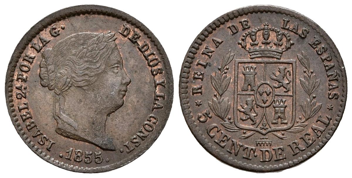 ISABEL II. 5 Céntimos de real. 1855. Segovia. Cal-612. Ae. 1,81g. EBC-.