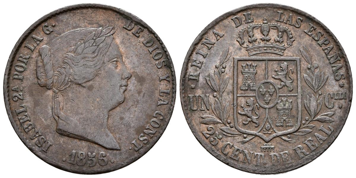 ISABEL II. 25 Céntimos de Real. 1856. Segovia. Cal-591. Ae. 9,44g. MBC+.
