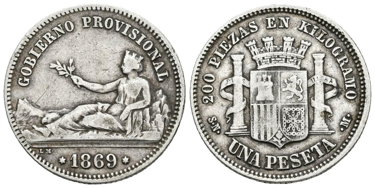 GOBIERNO PROVISIONAL. 1 Peseta. 1869. Madrid SNM. Cal-14. Ar. 4,92g. MBC-.