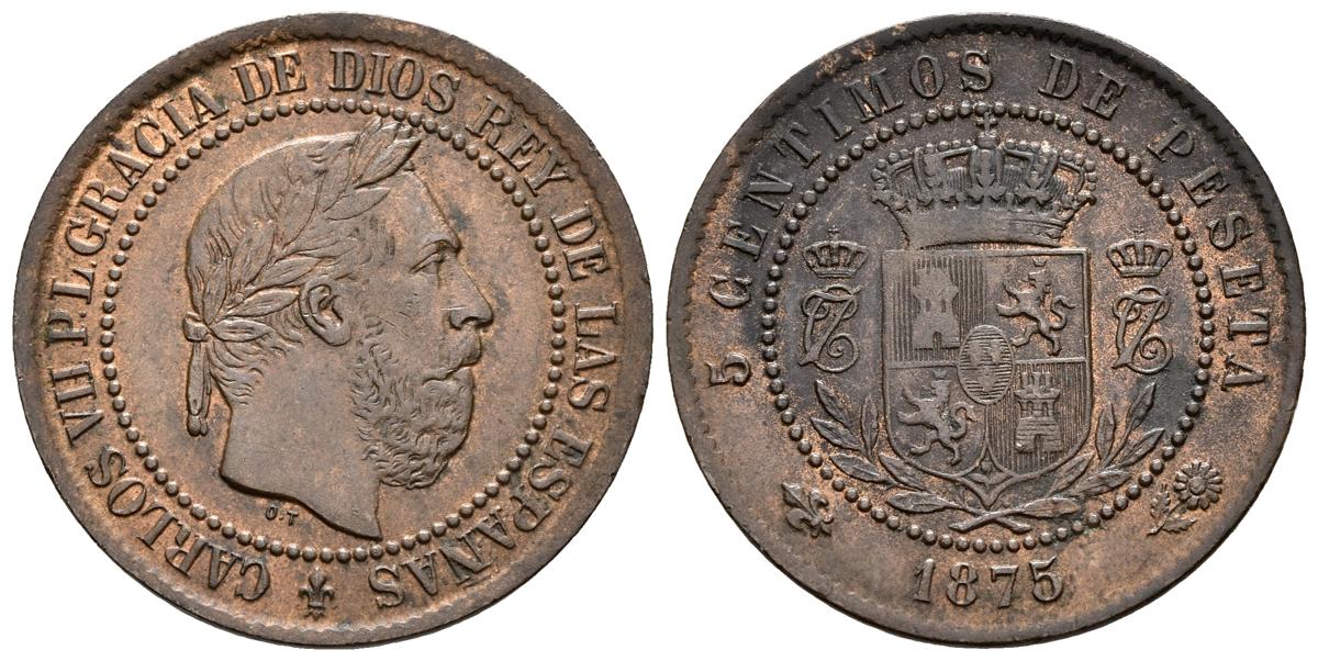 CARLOS VII. 5 Céntimos. 1875. Bruselas. Cal-10. Ae. 4,85g. MBC+.
