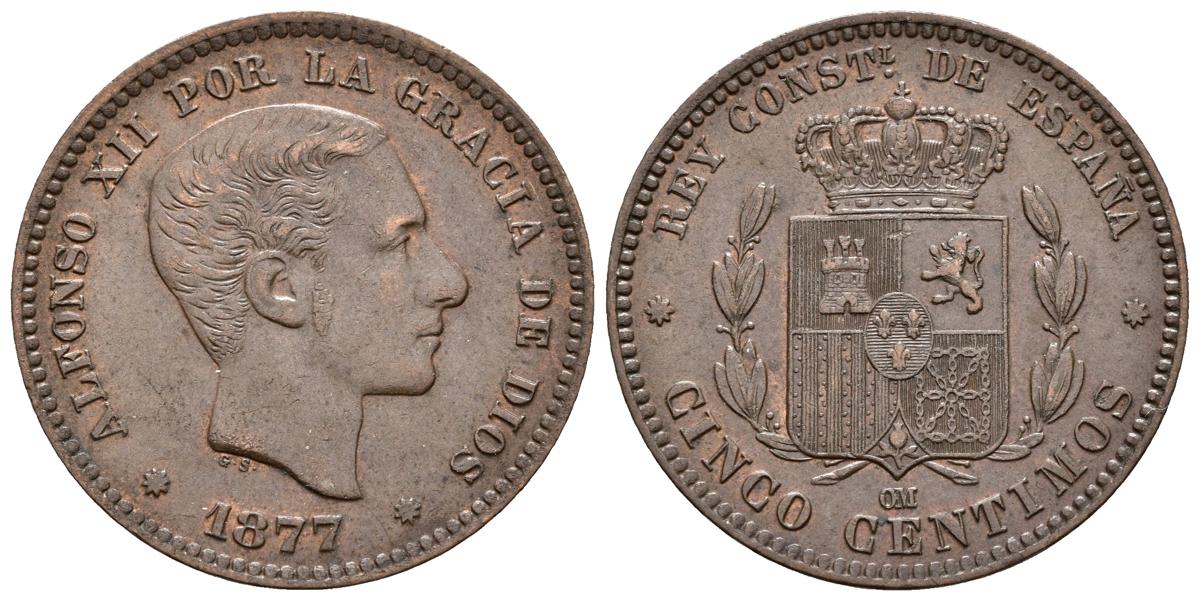 ALFONSO XII. 5 Céntimos. 1877. Barcelona OM. Cal-71. Ae. 4,88g. EBC.