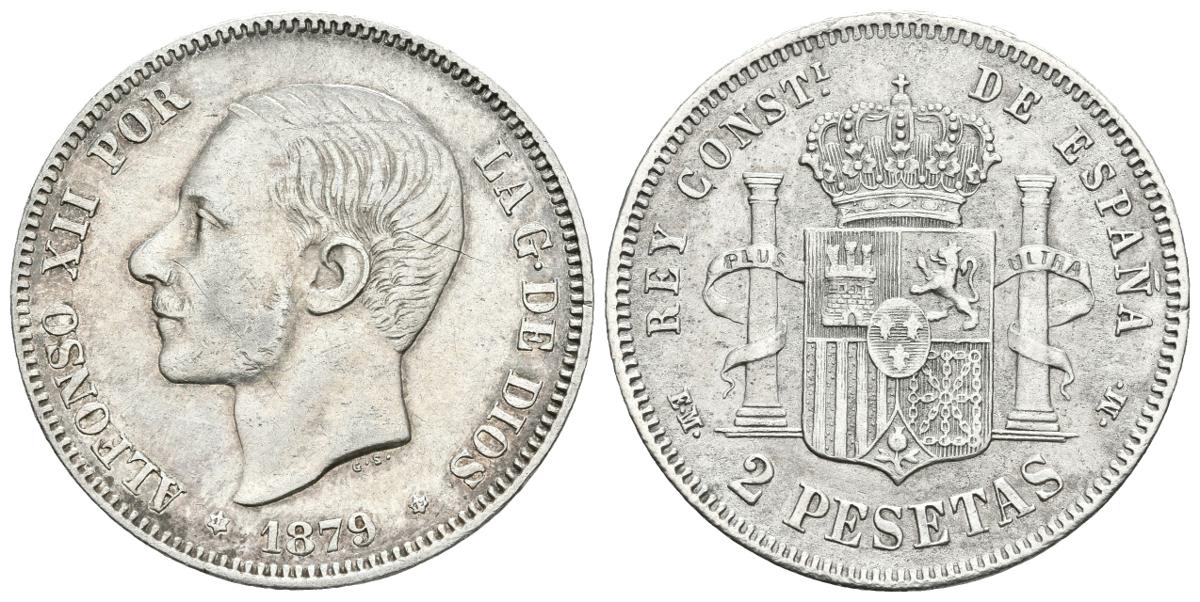 ALFONSO XII. 2 Pesetas. 1879 *18-79. Madrid EMM. Cal-46. Ar. 9,95g. MBC/MBC+.