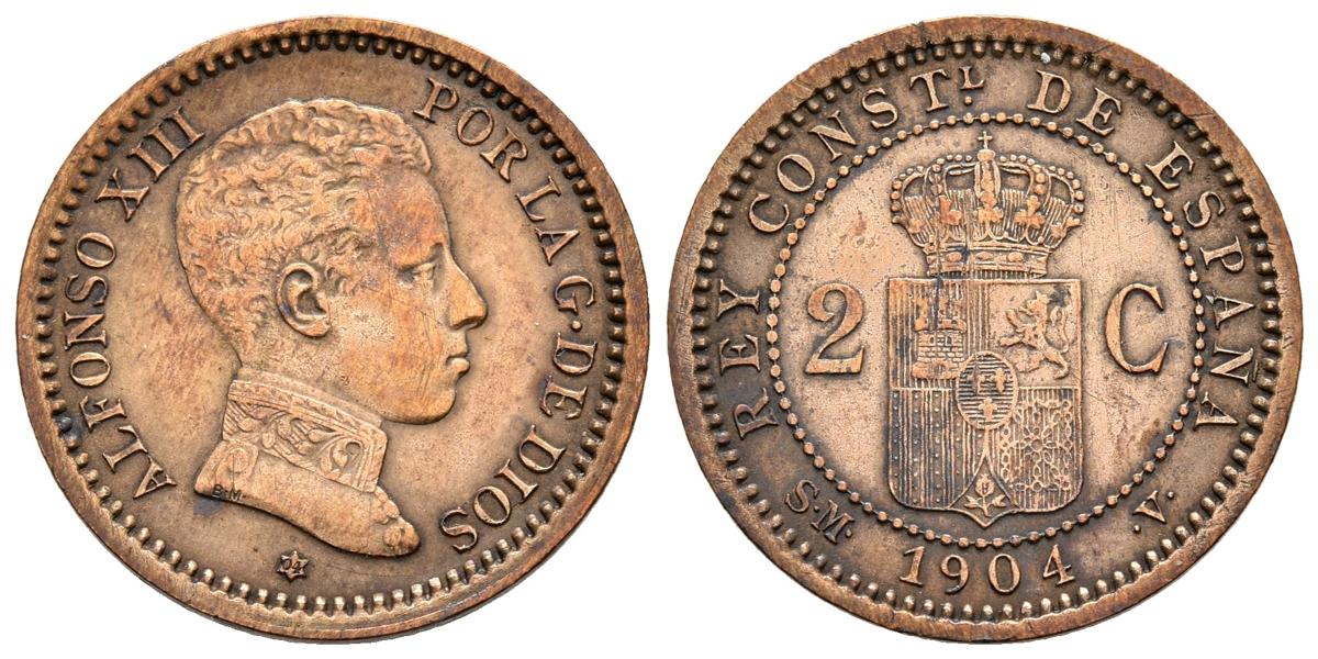ALFONSO XIII. 2 Céntimos. 1904 *04 (Partido). SMV. Cal-67var. Ae. 1,99g. MBC+.