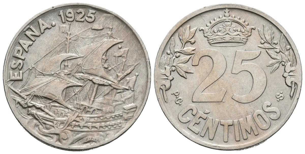 ALFONSO XIII. 25 Céntimos. 1925. PCS. Cal-65. Cu-Ni. 6,94g. Suave pátina. EBC+.