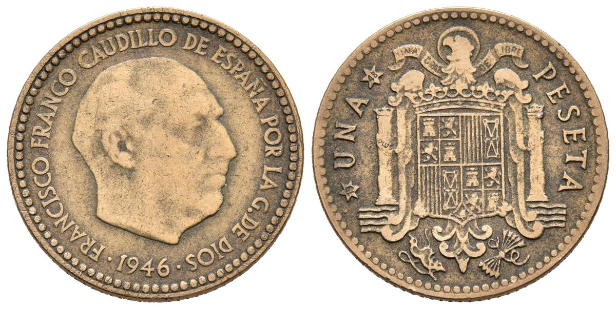 ESTADO ESPAÑOL. 1 Peseta. 1946 *19-48. Busto de Mariano Benlliure. Cal-75. 3,55g. MBC. Muy rara.